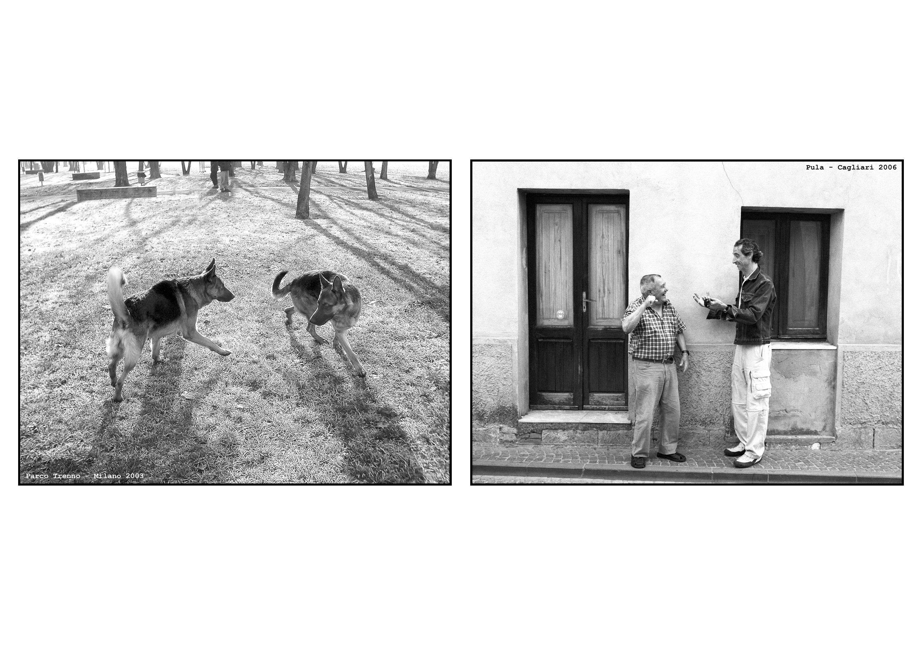 In questa mostra l’autore, noto presentatore televisivo ma da sempre attivo anche nel campo fotografico, espone 21 dittici realizzati con fotografie scattate in un arco di 45 anni, in cui mette a confronto il comportamento, l’atteggiamento e le reazioni dei cani e degli esseri umani colti in situazioni analoghe. Grazie ad una accurata selezione delle immagini del suo vasto archivio, Mengacci crea un percorso disseminato di curiose analogie, alcune delle quali fanno sorridere ed altre riflettere, sottolineando il lato spesso umano dei cani contrapposto a quello, a volte, “canino” degli esseri umani.