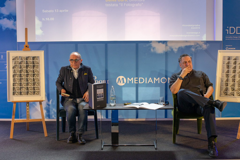 In occasione della settimana del Design, Milano si rimpilza di personaggi ed eventi legati in qualche modo a questo affascinante mondo che fa raccontare mille e più storie – fatte di installazioni, parole, multimedialità e materia. Esperienze che sfociano, inevitabilmente nel mondo della fotografia. Uno di questi eventi, organizzato dal gruppo Mondadori, contenuto nel programma degli Icon Design Talks prende il titolo di Future-Architecture di Maurizio Galimberti. Le architetture “mosaico” su istantanee Fujifilm Instax raccontate proprio dal fotografo Galimberti, intervistato da un altro grande personaggio del panorama fotografico italiano – Denis Curti. Sicuramente non potevo mancare a questo appuntamento, per conoscere meglio il lavoro di Galimberti e incontrarlo di persona. Sabato 13, nel pomeriggio, presso la Fondazione Riccardo Catella (Milano) prende il via il talks con un cenno – molto interessante – su come i due si sono conosciuti. Alle parole Viaggio In Italia e Ghirri tutto si fa chiaro, anche se non parliamo dello storico viaggio fotografico ma, sulle tracce dell’originale i due firmano il loro sodalizio presso la Rocca di Fontanellato e da li in avanti è storia. Galimberti, continua nella narrazione e mi colpisce una sua frase quando dice che – non mi definisco un fotografo di architettura ma di architetture – e trovo ci sia in effetti una sostanziale differenza tra la staticità della pura architettura immortalata in uno scatto – perfetta, precisa e regolare nelle geometrie, quindi puramente accademica anche se capace di suscitare nell’osservatore la sensazione di maestosità, e la fotografia di Galimberti.