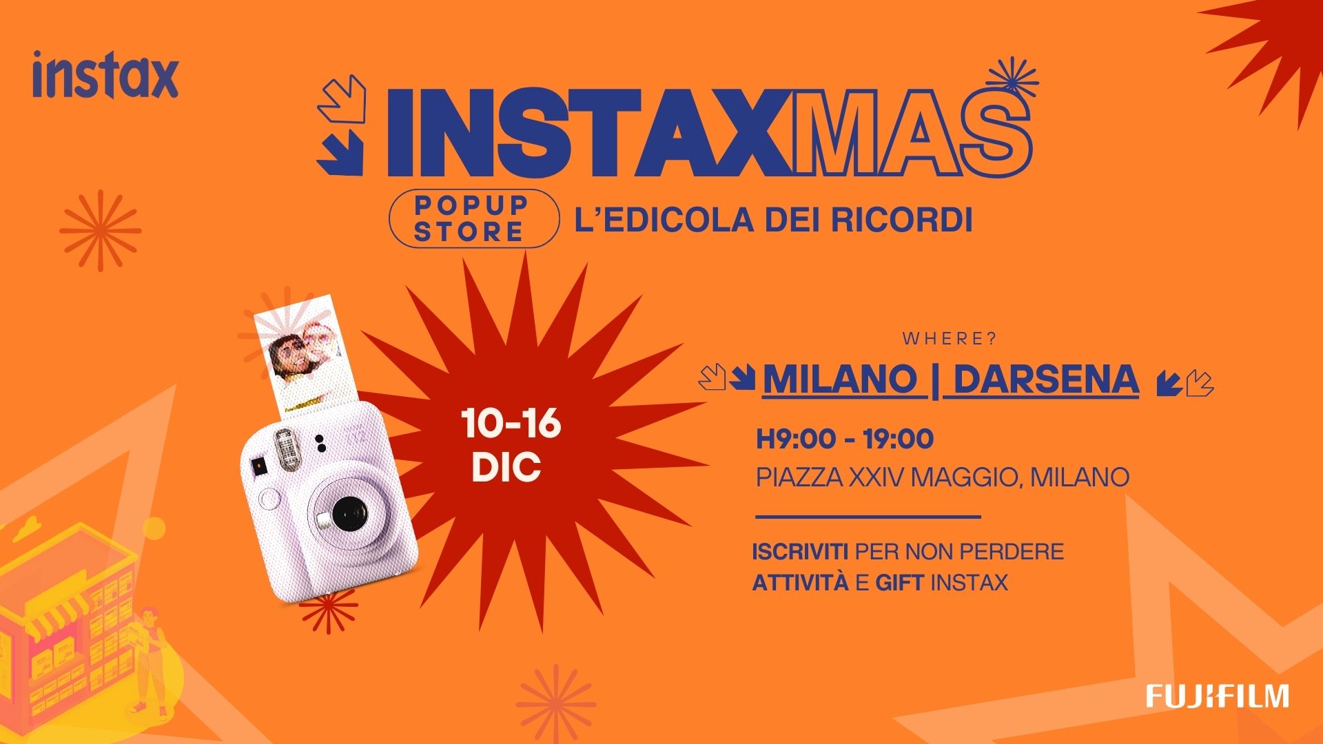 Fujifilm Italia presenta instaxmas popup store, l’edicola che trasformerà la Darsena di Milano in un luogo di incontro, magia natalizia e acquisti originali.