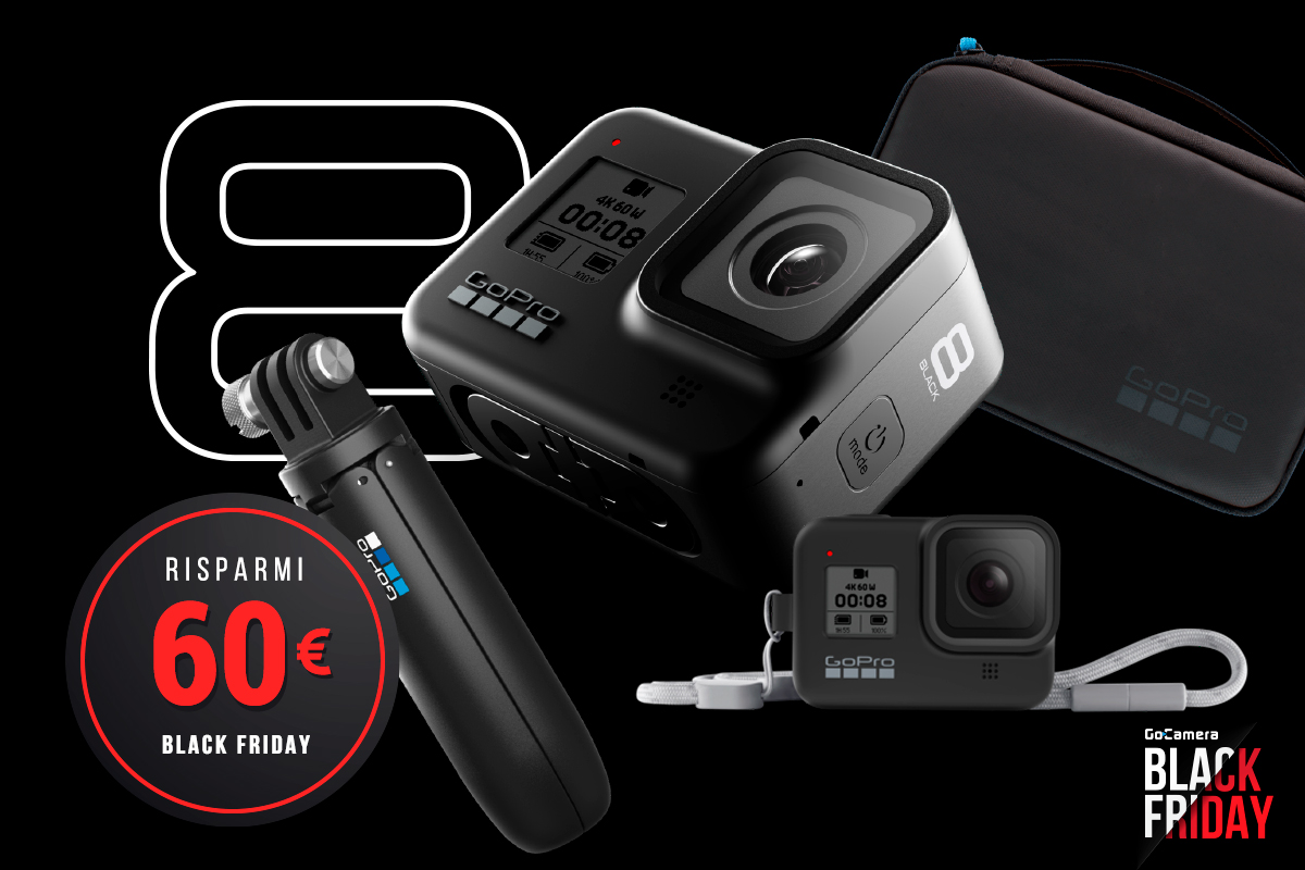 GoPro Black Friday: action cam, accessori e formazione – L’offerta GoPro per la Black Week inizia con le GoPro HERO8 e HERO7 Black, imperdibile per chi desidera acquistarle per sé stesso o come regalo. In aggiunta, una selezione di accessori in omaggio e per la top di gamma l’esclusivo videocorso, indispensabile per sfruttare al meglio le potenzialità delle camere GoPro.