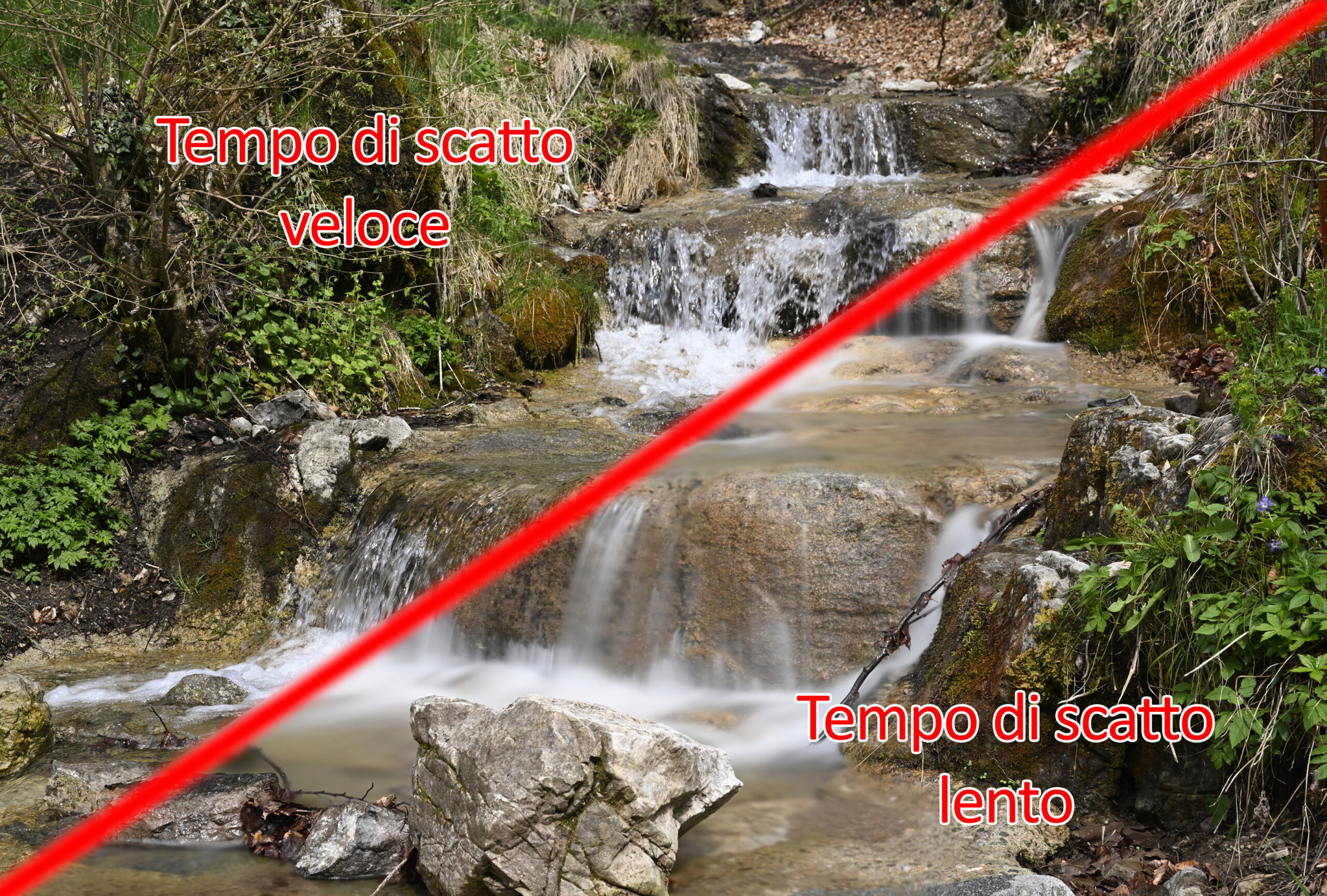 Dopo aver raggiunto Marco nei pressi di Cremeno, con una passeggiata di circa 15 minuti abbiamo raggiunto la location prescelta. Una cascatella in mezzo al bosco. Il sole andava e veniva come potrete apprezzare dal video. Il che ci ha messo un po’ in difficoltà con l’esposizione. Arrivati e posizionati cavalletto, macchina con 24-70 montato, Marco ha impugnato la sua GoPro nuova e io ho iniziato a montare l’anello adattatore Wide da 82 mm. Subito dopo è stato il momento dell’Holder e a turno dei vari filtri sopra descritti.