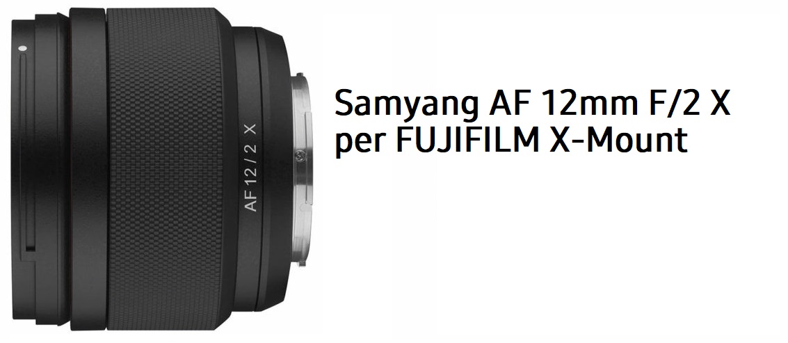 Appena arrivato da Samyang il suo primo obiettivo ultra grandangolare con messa a fuoco automatica per fotocamere FUJIFILM con attacco X: Samyang AF 12mm F/2 X. Ottica leggera e molto compatta è per sensori APS-C e dovrebbe avere un campo visivo di circa 99,1° con distanza minima di messa a fuoco di soli 20 cm.